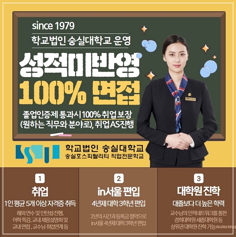 바로 국내 최초 학교 법인에서 운영중인 숭실호스피탈리티 직업전문학교입니다!