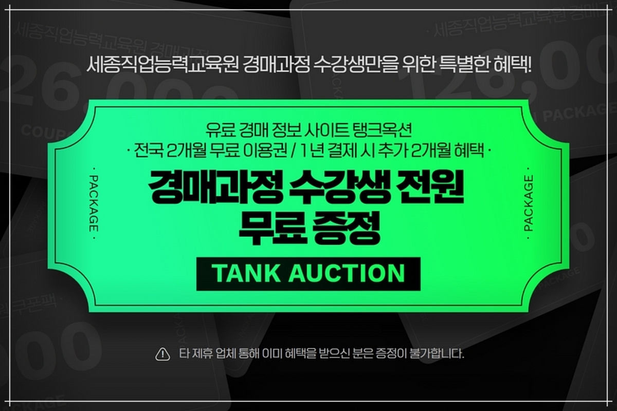 수강생 모두에게 유료 경매 사이트 탱크옥션 2개월 이용권을 드리고 있어요.