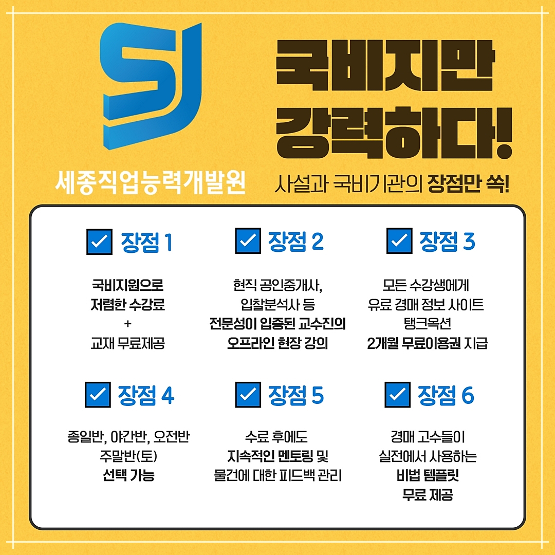 세종 직능원은 직장인 분들도 어렵지 않게 수강이 가능하도록