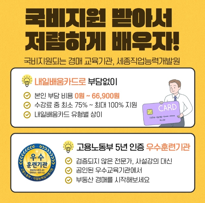 요즘에는 국비지원 경매 강좌가 많아지고 있을 뿐 아니라