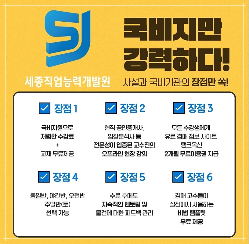 관련 소액 경매, 공매에 대한 내용들까지 배울 수 있는 세종 직능원은