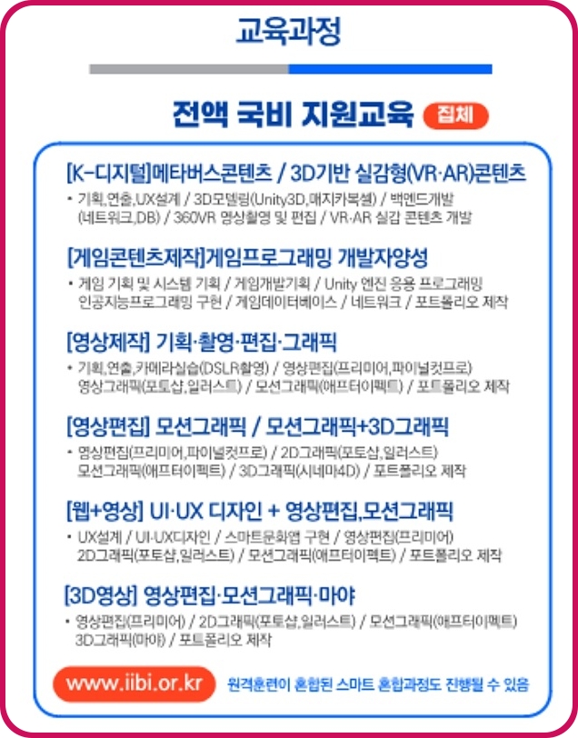 일부 전공이 국비지원 무료교육 종류로
