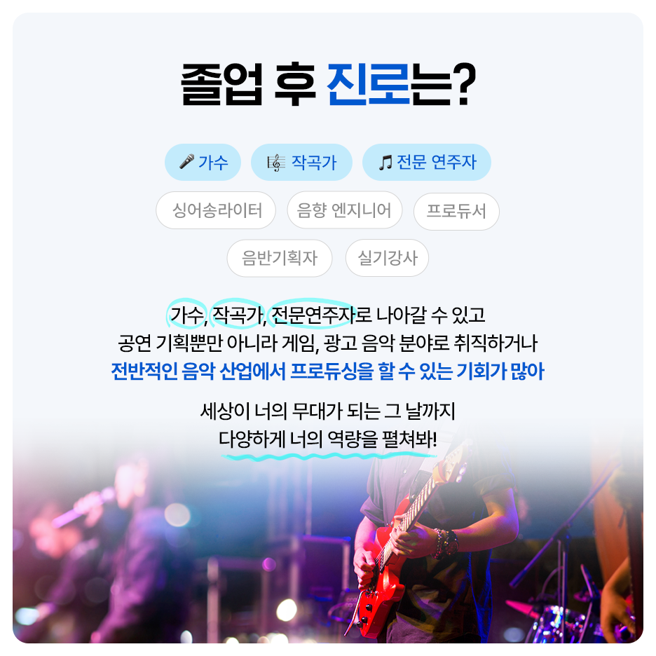 특히, 실용음악과실기는 한 가지만