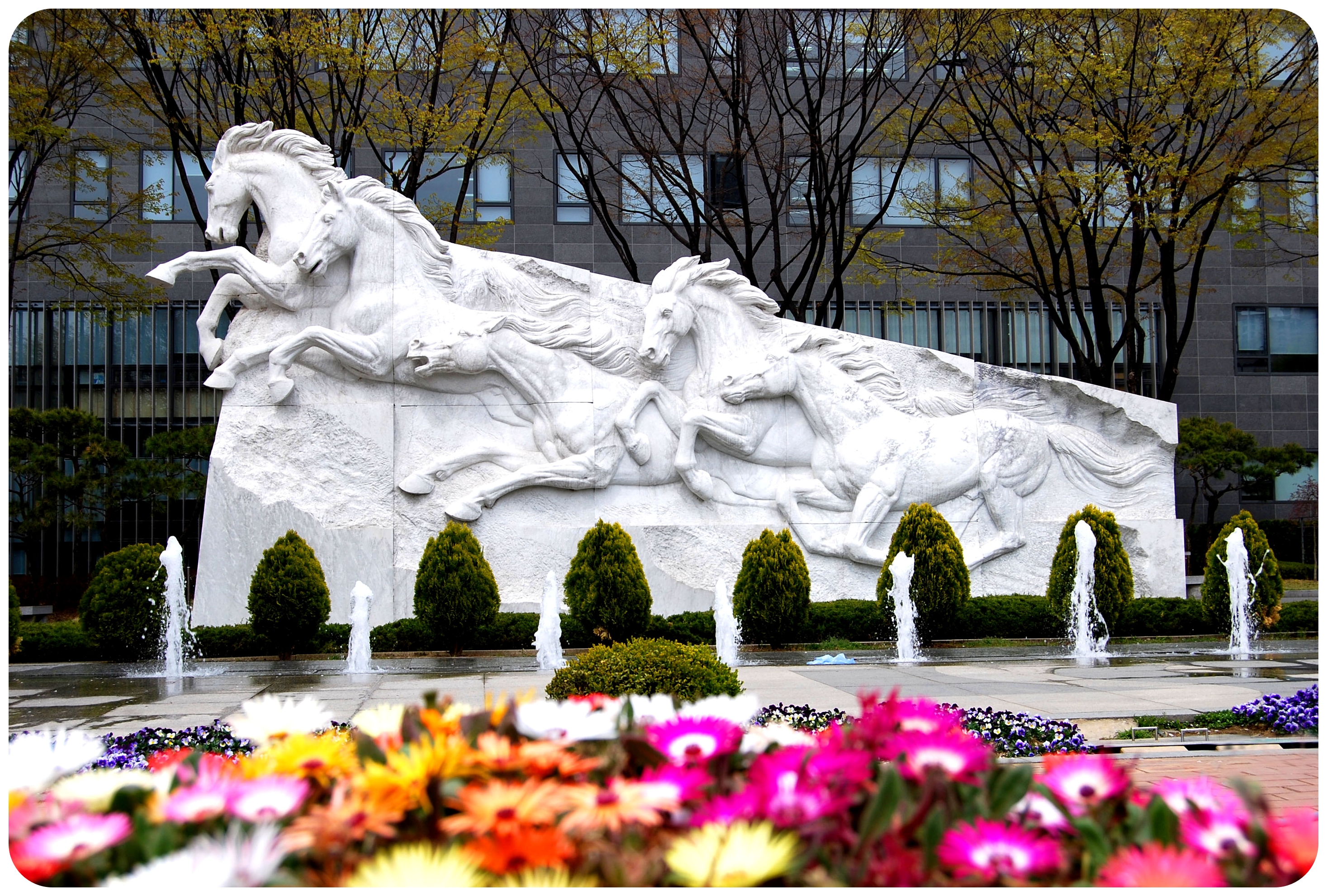 뿜어지는 분수와 함께