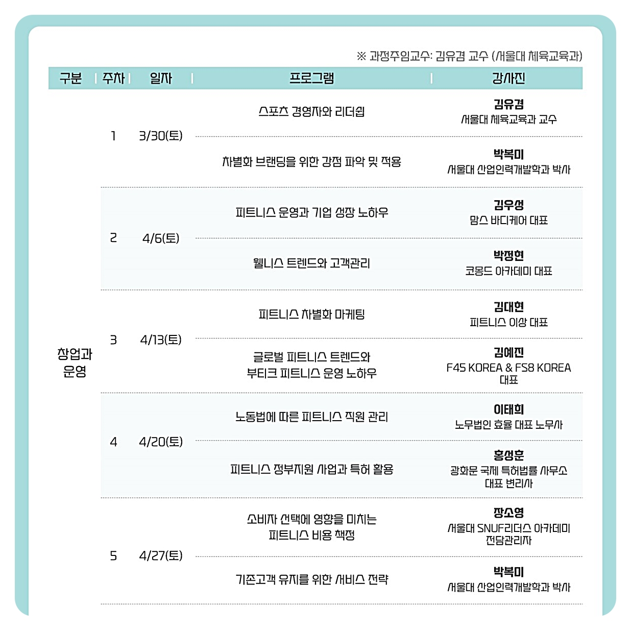 서울대학교 SNUF 리더스 아카데미 내용