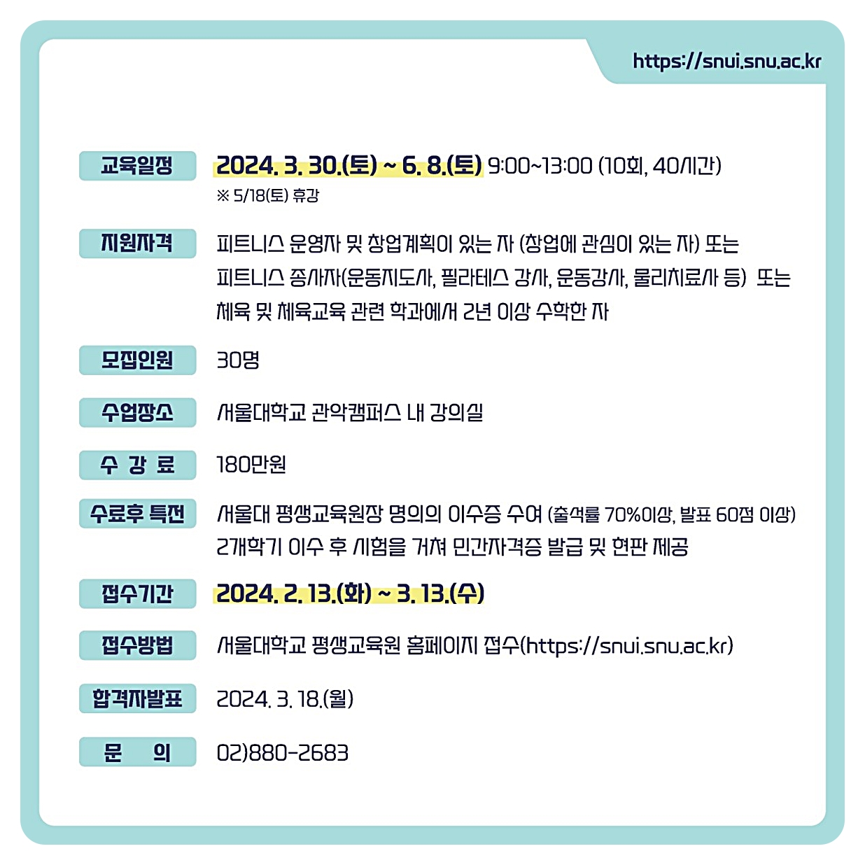 서울대학교 평생교육원 홈페이지에서
