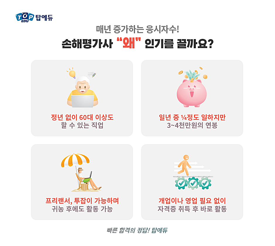 손해평가사 시험 1,2차 합격전문, 최신강의, 시험일정, 시험과목, 취업, 연봉, 탑에듀 손해평가사 인강