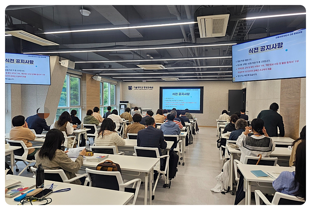 서울대학교 평생교육원의 강의는 서울대학교 관악캠퍼스에서 진행됩니다. 이는 단순히 온라인 강의에서 느낄 수 없는 현장감을 제공하며, 캠퍼스에서 공부하는 경험을 통해 학습 동기부여를 높일 수 있습니다. 또한, 수강 편의를 위해 희망하는 수강생들에게 서울대학교 주차할인권을 제공하여 편리하게 강의를 들을 수 있도록 지원합니다. 또한, 동료 학습자들과의 교류를 통해 다양한 인맥을 쌓고, 학습에 대한 동기부여와 협력의 기회를 얻을 수 있습니다.