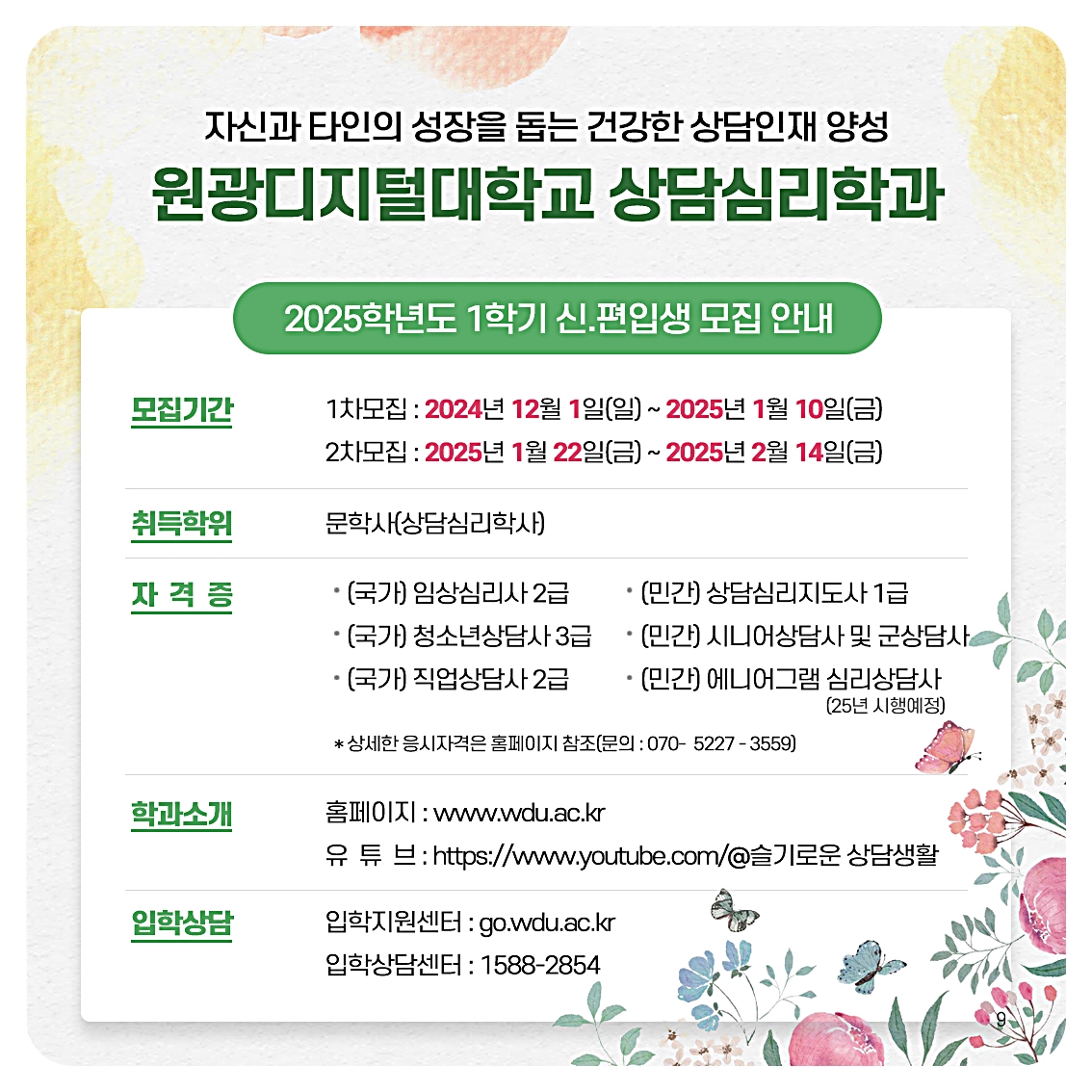 "원광디지털대학 상담심리과"인데요!