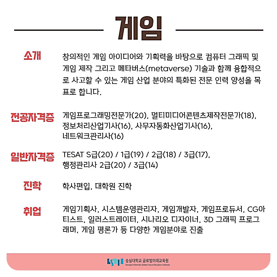 숭실대 글로벌미래교육원 게임전공에서는