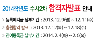 신안산대는 수시2차모집발표일이 2013년 12월 2일 월요일에 발표가 되었다