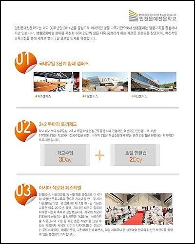 인천문예전문학교는 식공간특성화 전문학교로 전문학교 중에서도