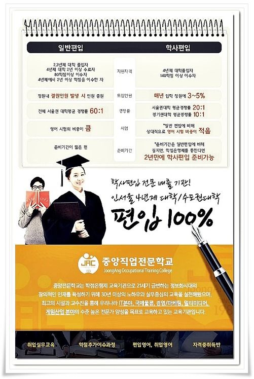 인천에 있는 중앙전문학교는 편입이 특성화 되어있어 소수정예 인원모집으로